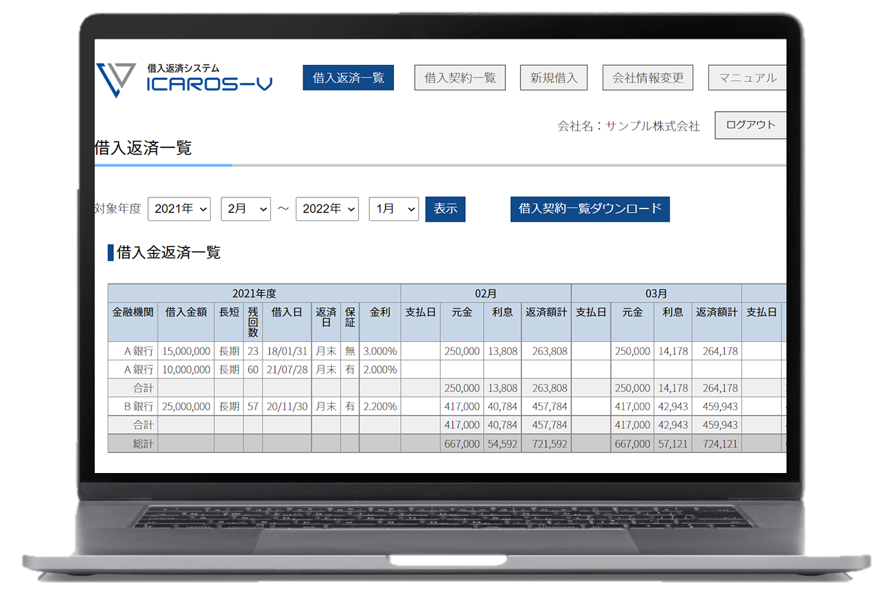 しかも、出力した帳票はそのまま金融機関に提出可能。スムーズな借入金管理を体感してください。